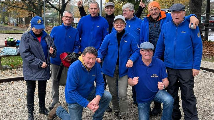 Schon wieder ist ein Jahr Boule-Ligabetrieb vorbei. Die diesjährige Saison begann am 13. April und endete am 28. September. Zumindest für drei der vier Mannschaften. Die Mannschaft BTV 2 musste am 9. November in der Relegation um den Klassenerhalt kämpfen und setzte sich dort mit 3:2 gegen Engelskirchen-Loope 1 durch. Aufgrund zahlreicher Ausfälle wurde die Mannschaft BTV 2 dabei von Spielern aus den Mannschaften BTV 3 und BTV 4 unterstützt. Vielen Dank für das tolle Teamplay.