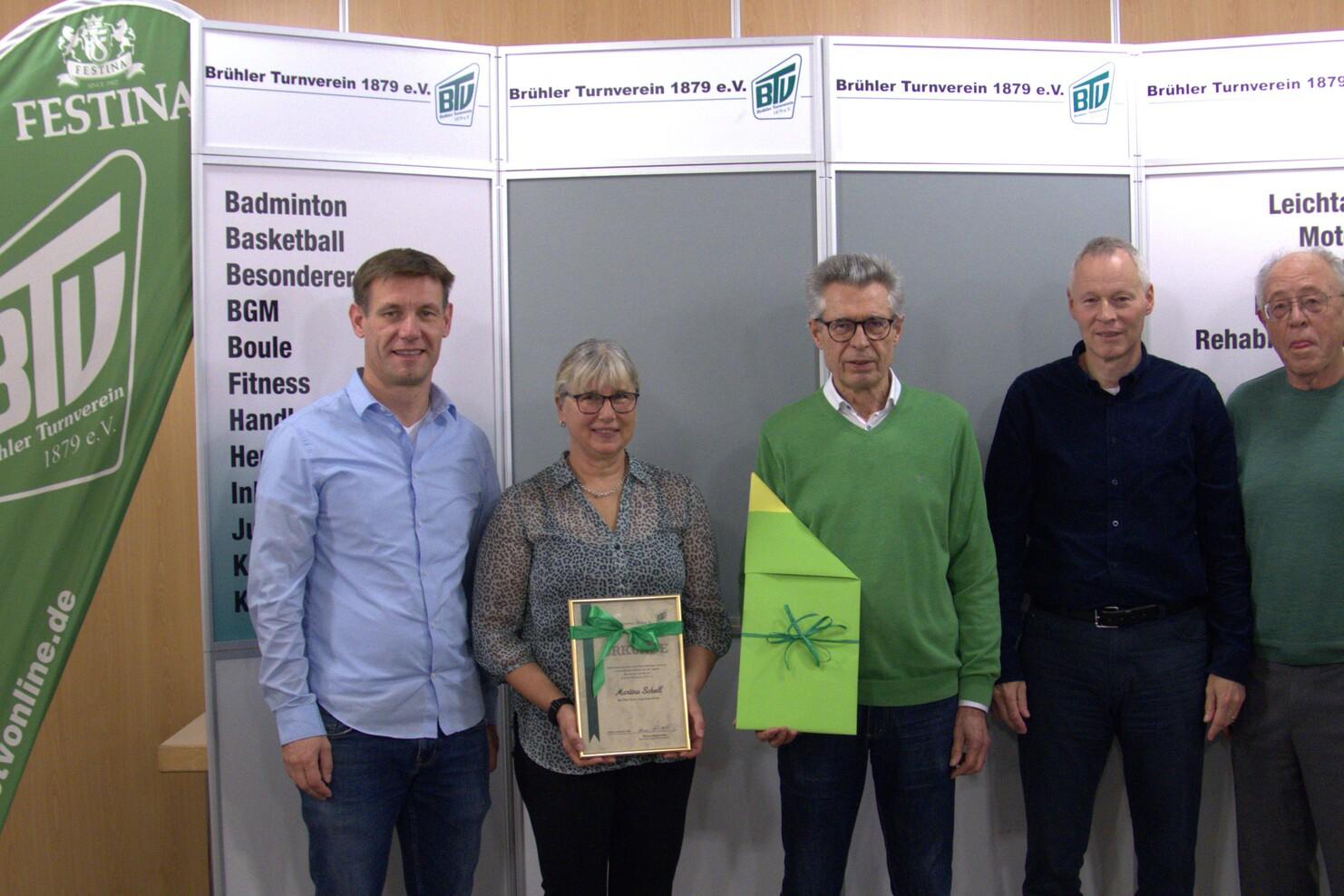In Anerkennung ihrer wertvollen Beiträge und ihres unermüdlichen Wirkens für die Jugend des Vereins hat der Brühler Turnverein 1879 e. V. am 04.11.2024 Martina Scholl den Titel Ehren-Jugendvorständin verliehen. In ihren 18 Jahren als Jugendleitung hat Martina Scholl die Jugendarbeit im BTV nicht nur geprägt – sie hat diese erst möglich gemacht und auf ein neues Niveau gehoben.