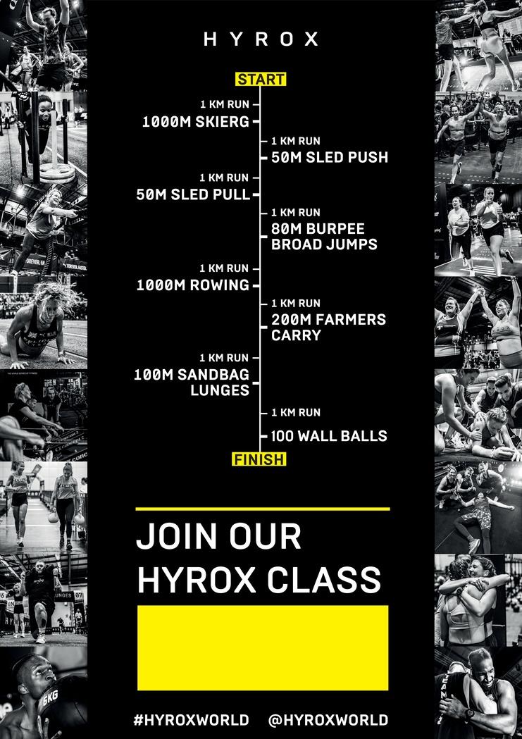 HYROX ist das ultimative Training im Bereich funktionelle Fitness. Es ist zugänglich, spaßig, abwechslungsreich, herausfordernd und bringt dich in Topform – mit einem klaren Ziel vor Augen. Das Training basiert auf den Grundlagen der HYROX Races und bietet einen umfassenden und ausgewogenen Ansatz für leistungsorientiertes Fitnesstraining.