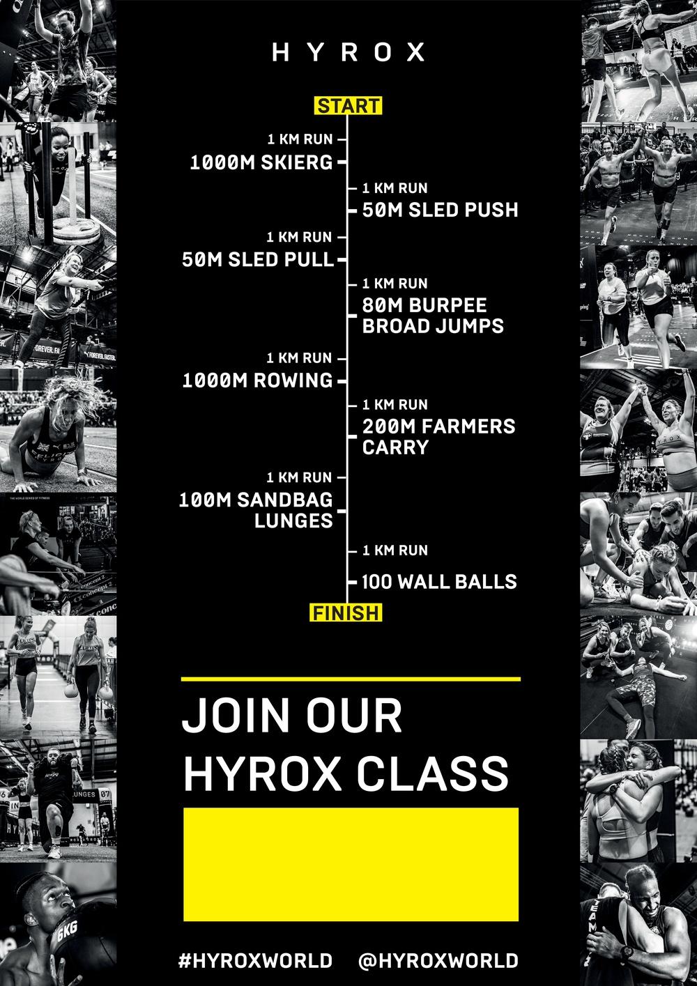 Hyrox ist ein hybrides, hochintensives Workout, das Laufen mit funktionellen Fitnessübungen kombiniert. Es ist dafür gedacht, in Gruppenkursen trainiert zu werden, was eine Gemeinschaft fördert, indem es eine unterstützende, aber zugleich wettkampforientierte Atmosphäre schafft, in der jeder – vom Anfänger bis zum erfahrenen Athleten – aufblühen kann.