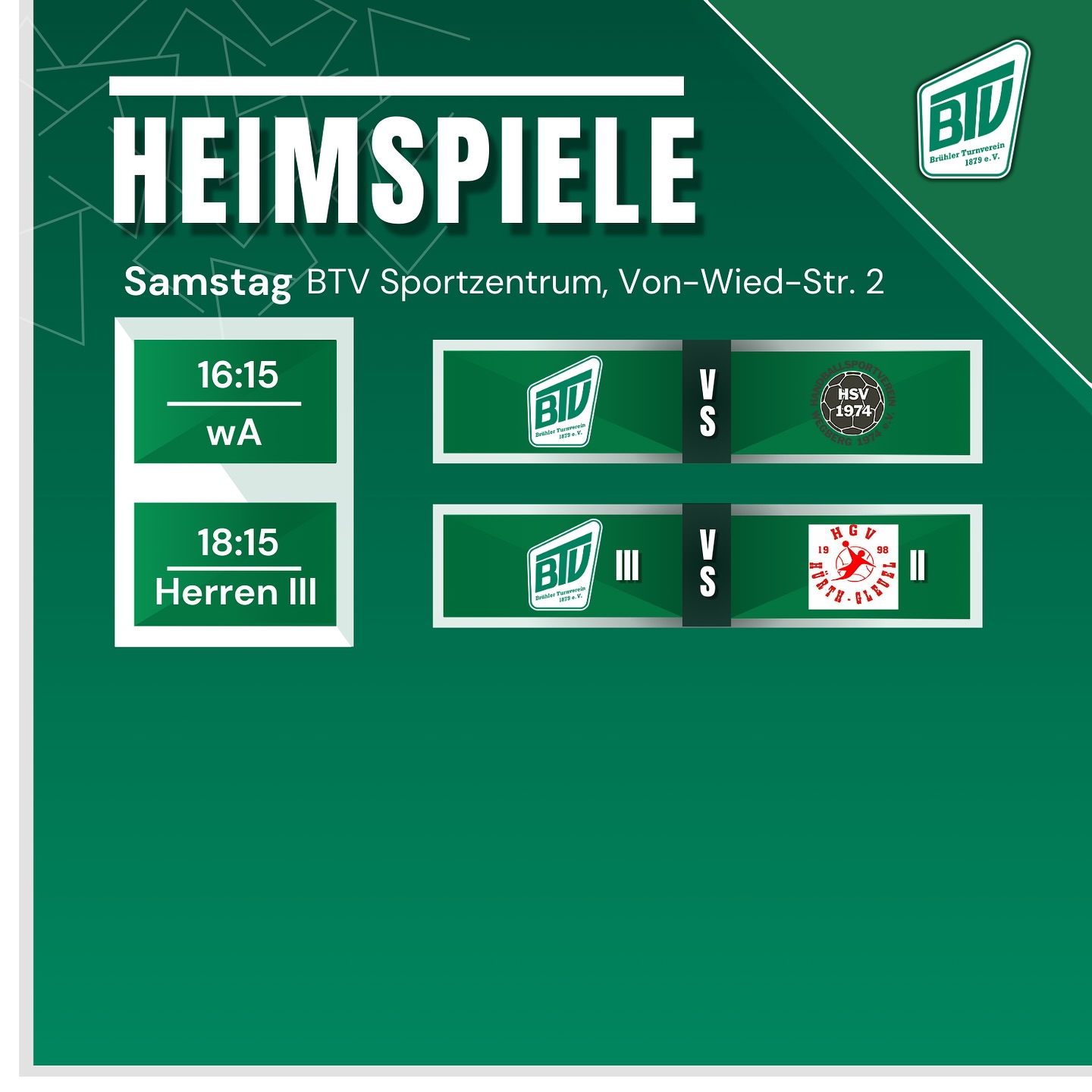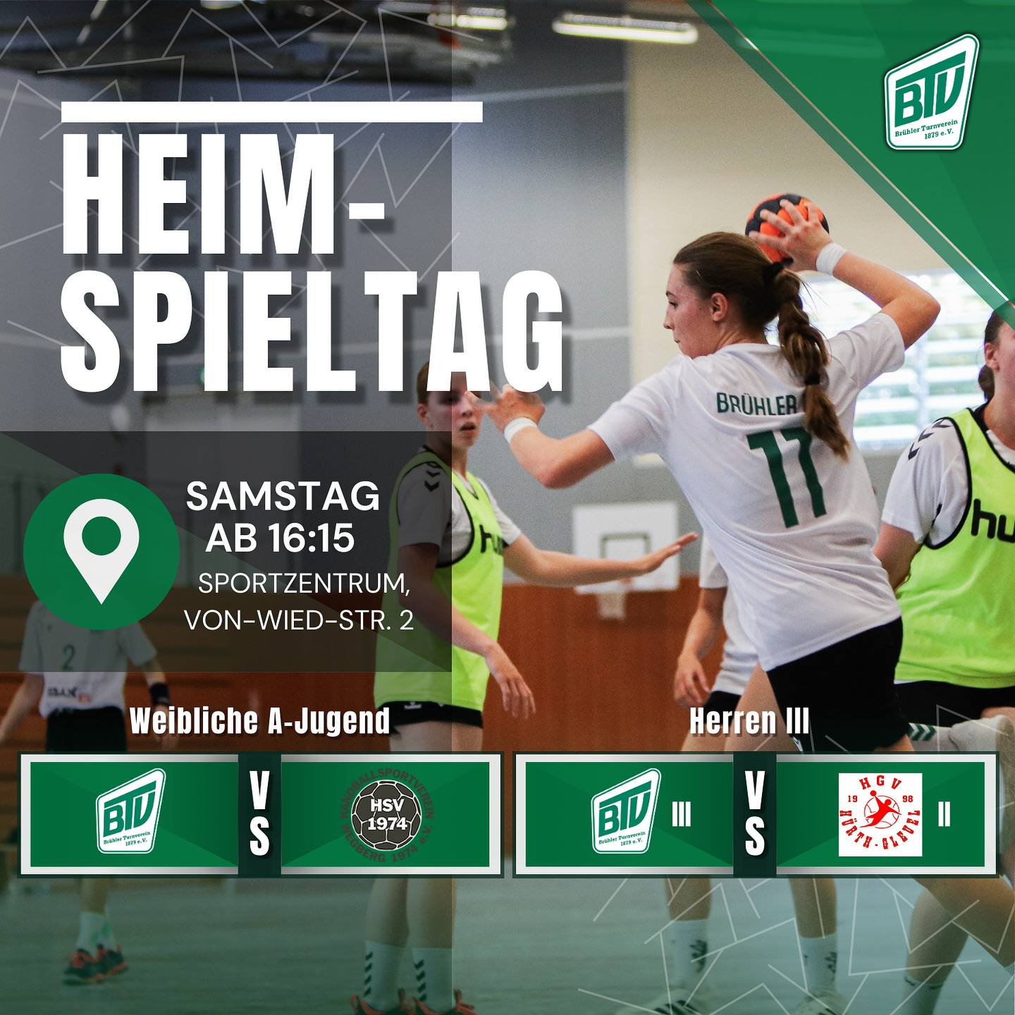 Samstag ab 16:15 Heimspieltag im BTV Sportzentrum!💚🤍