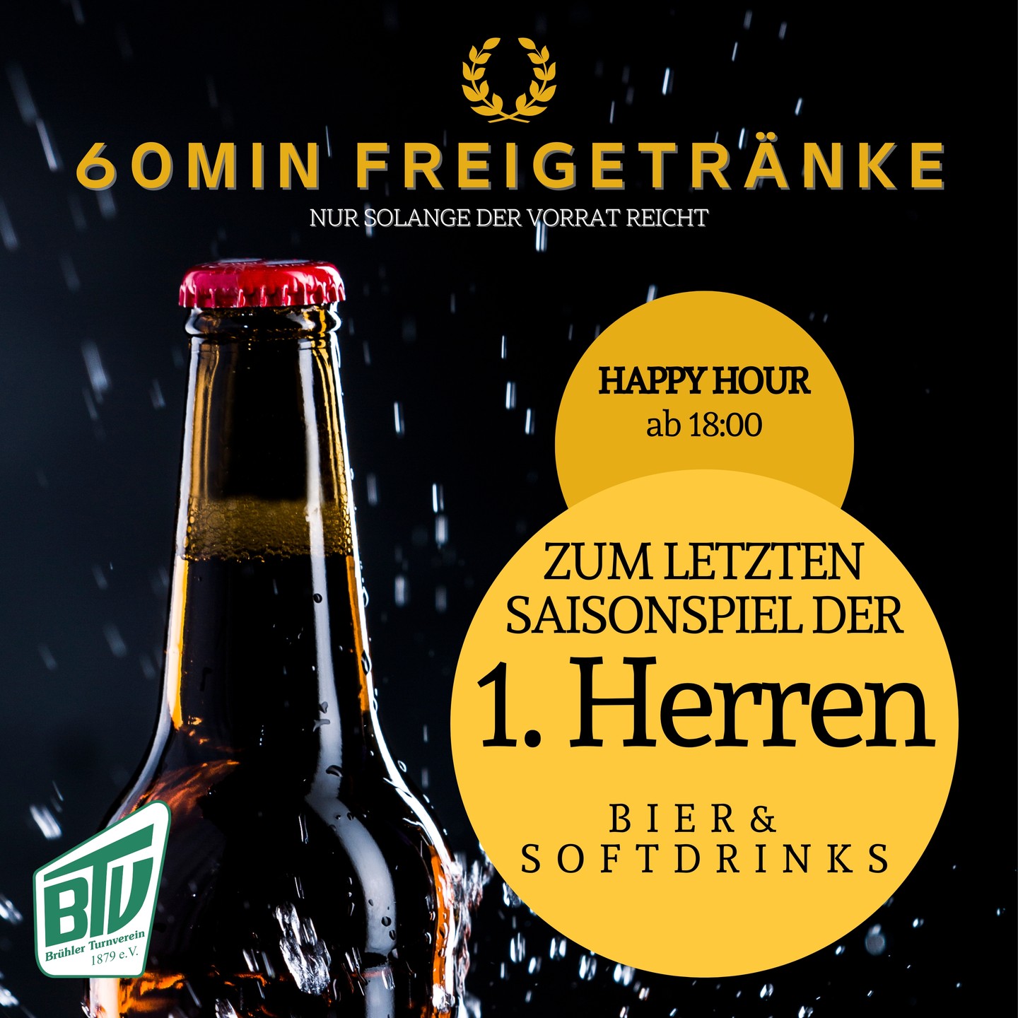 Der Förderverein gönnt allen Fans zum letzten Saisonspiel während dem Spiel der 1. Herren Freigetränke. Egal ob Softdrinks oder Bier, für jeden Fan wird was dabei sein.