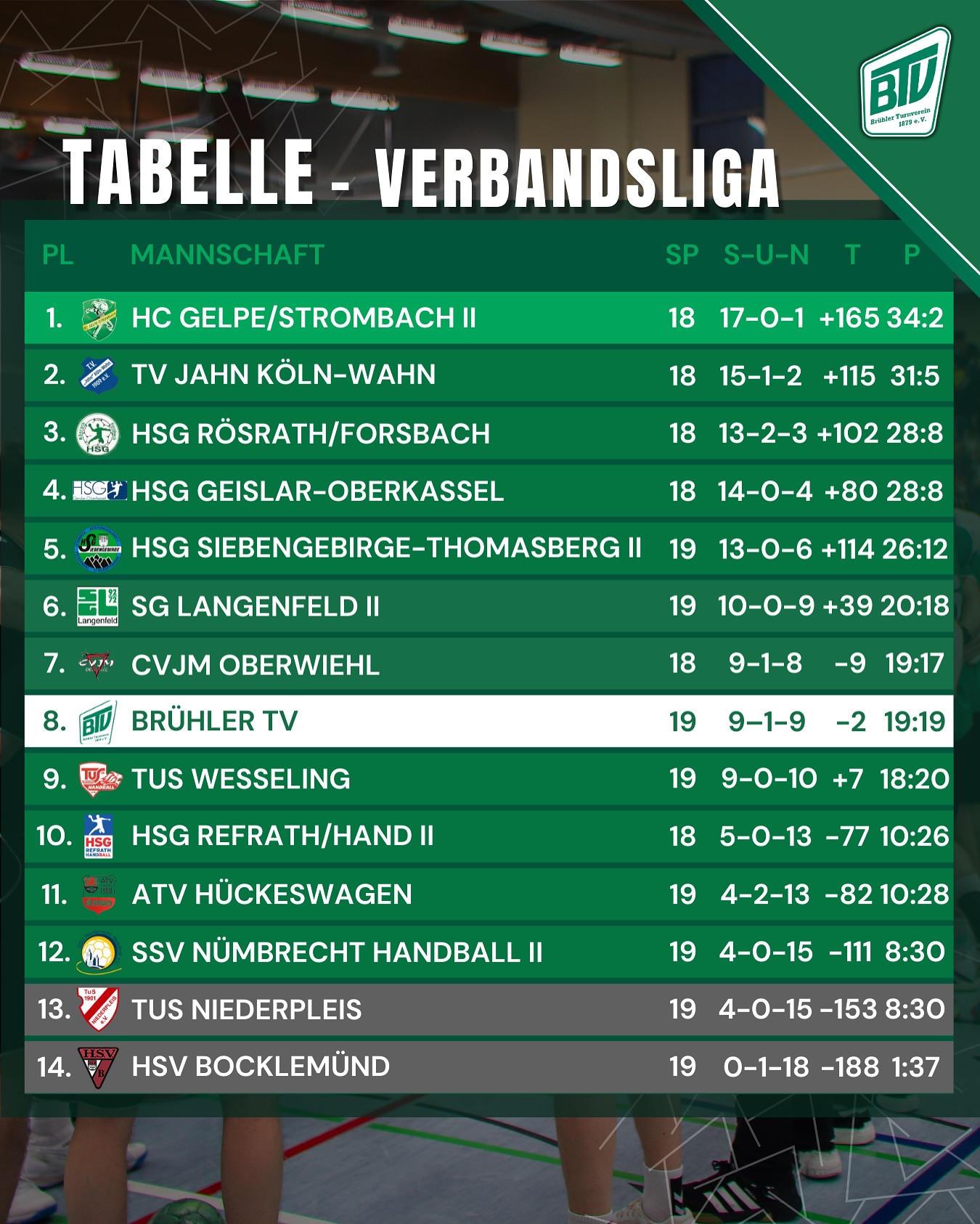 Nach der Pause erwischte Brühl den besseren Start, glich schnell aus und übernahm die Kontrolle. In der 40. Minute verletzte sich der Spielmacher der HSG schwer – an dieser Stelle: Gute Besserung! Die Gäste konnten die personellen Rückschläge nicht mehr kompensieren, während der BTV seinen Lauf konsequent nutzte (50. Minute: 30:24).