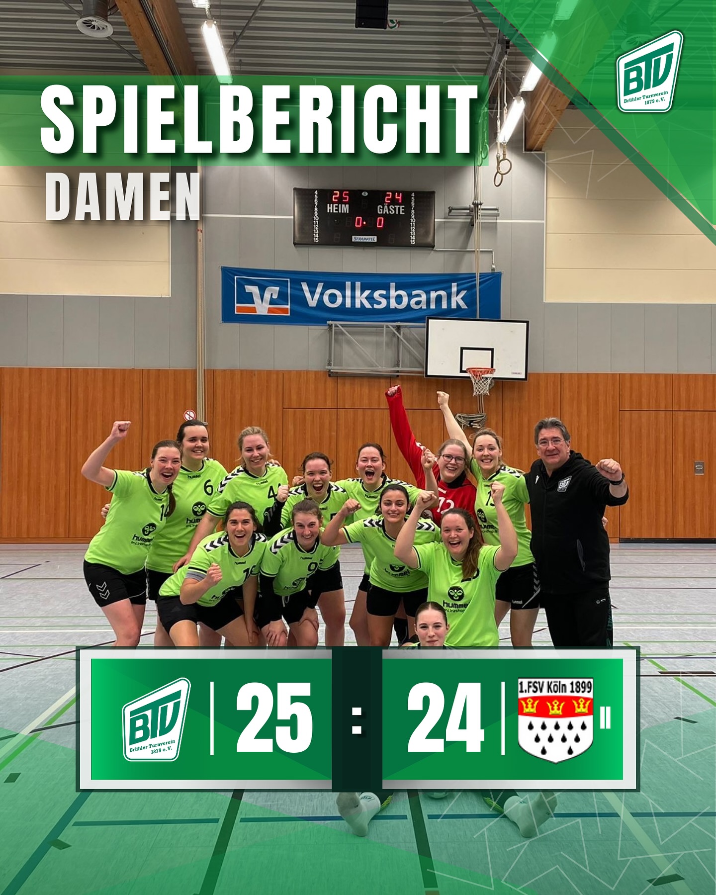 In den entscheidenden Momenten bewahrte das Team einen kühlen Kopf und wurde von der großartigen Unterstützung der BTV-Fans getragen. Ein verdienter Sieg in einem echten Samstagabendkrimi! 💚🤍