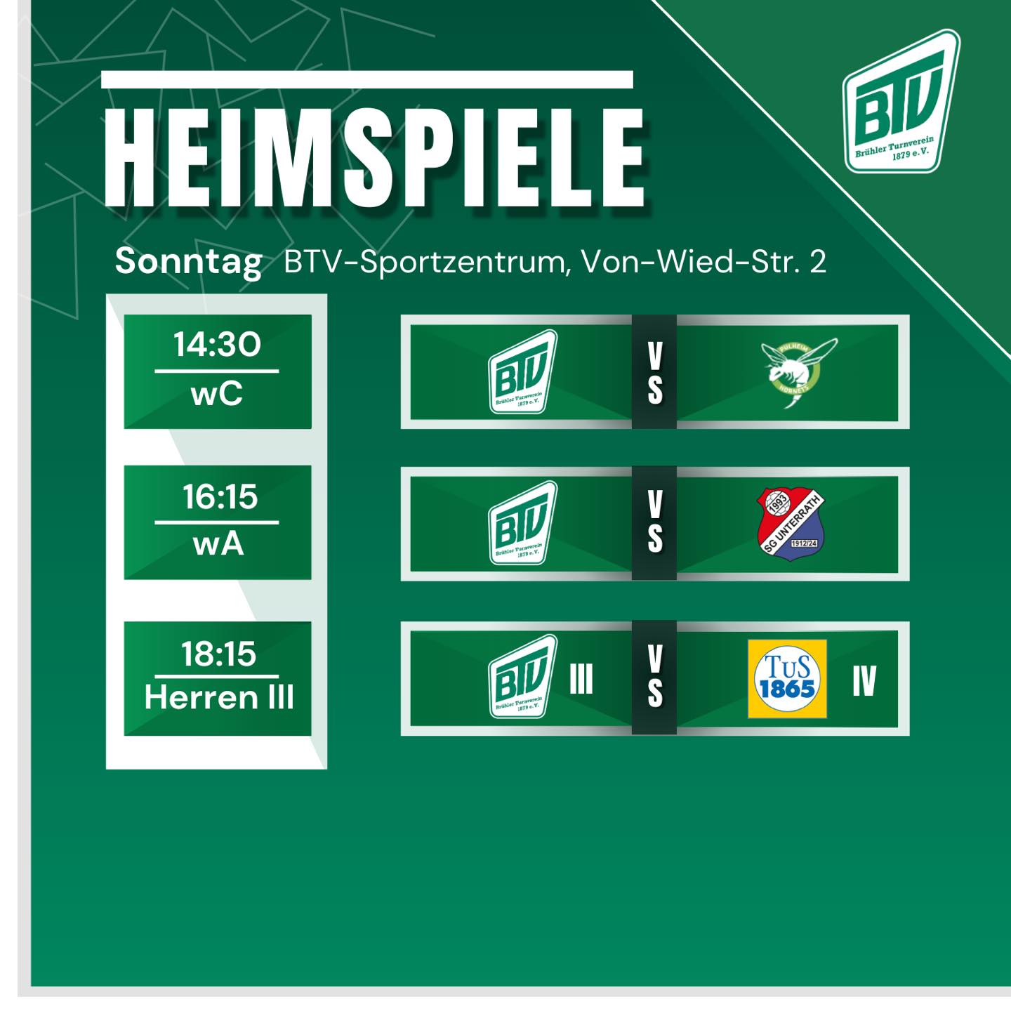 🚨Hinweis: Die Heimspiele finden nicht wie in der Grafik am Sonntag im BTV statt, sondern am SAMSTAG🚨