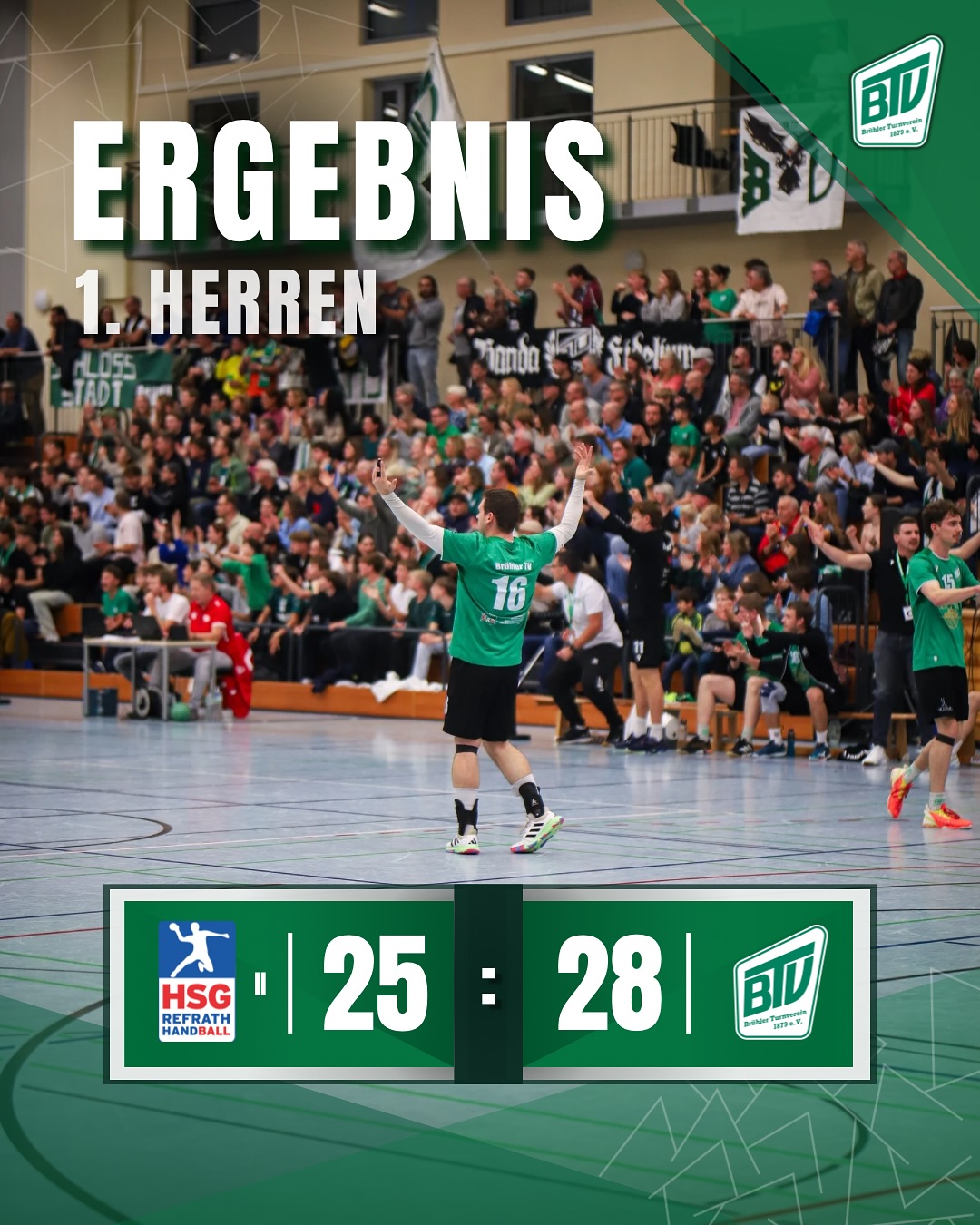 Die erste Herrenmannschaft des BTV trat am Wochenende auswärts bei der Zweitvertretung der HSG Refrath/Hand an. Der Start ins Spiel verlief holprig, denn zwei frühe Zwei-Minuten-Strafen setzten die Mannschaft zunächst unter Druck. Dennoch gelang es durch eine starke Abwehrarbeit und einen hervorragend aufgelegten Sören Mauer im Tor, einen größeren Rückstand in Unterzahl zu verhindern.