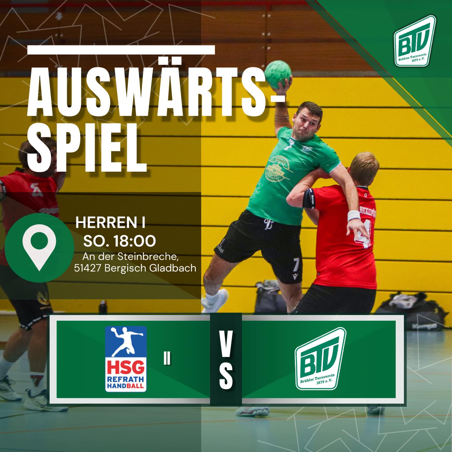 Im letzten Hinrundenspiel trat die zweite Herren des BTV bei der HSG Refrath-Hand IV an. Es zeigte sich zuerst ein enges Spiel. Der BTV II versuchte, durch die Ballgewinne in der Abwehr schnelle Gegenangriffe mit der zweiten Welle zu starten und den Gegner so vor Probleme zu stellen. In den ersten 18 Minuten gelang das, teilweise durch eigene Fehlwürfe und fehlendes konsequentes Abwehrverhalten, noch nicht vollständig (6:8). Der Mannschaft gelang es aber zunehmend, in die Lücken der gegnerischen Abwehr zu gehen und so konnte man häufiger Zeitstrafen des Gegners verursachen. In den letzten 5 Minuten der ersten Halbzeit kam der Angriff dann ins Rollen, so ging es mit einem 12:9 in die Halbzeit.
