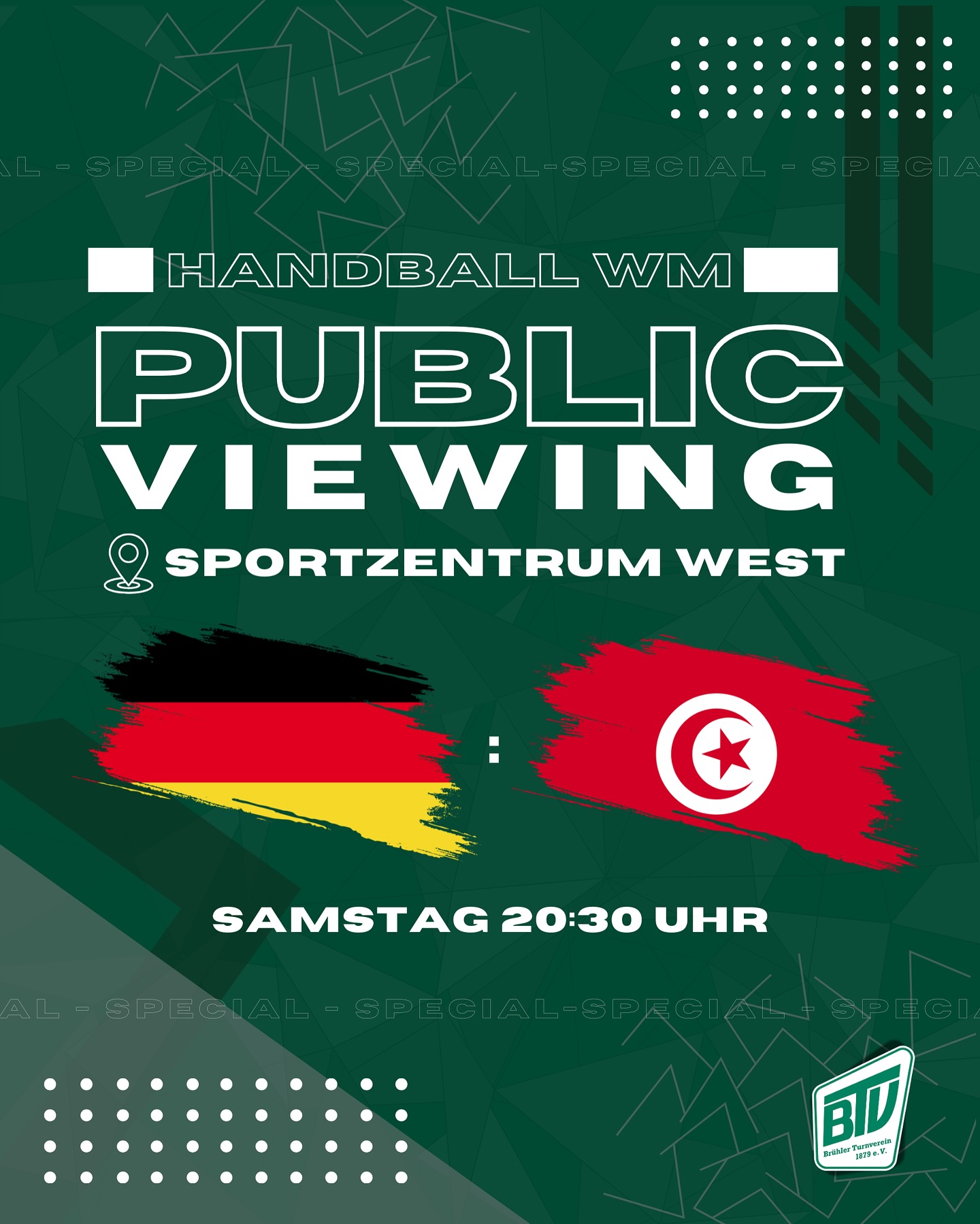 Im Anschluss daran seid ihr natürlich herzlich zu unserem Public Viewing für das Spiel Deutschland vs Tunesien im BTV-Sportzentrum eingeladen!
