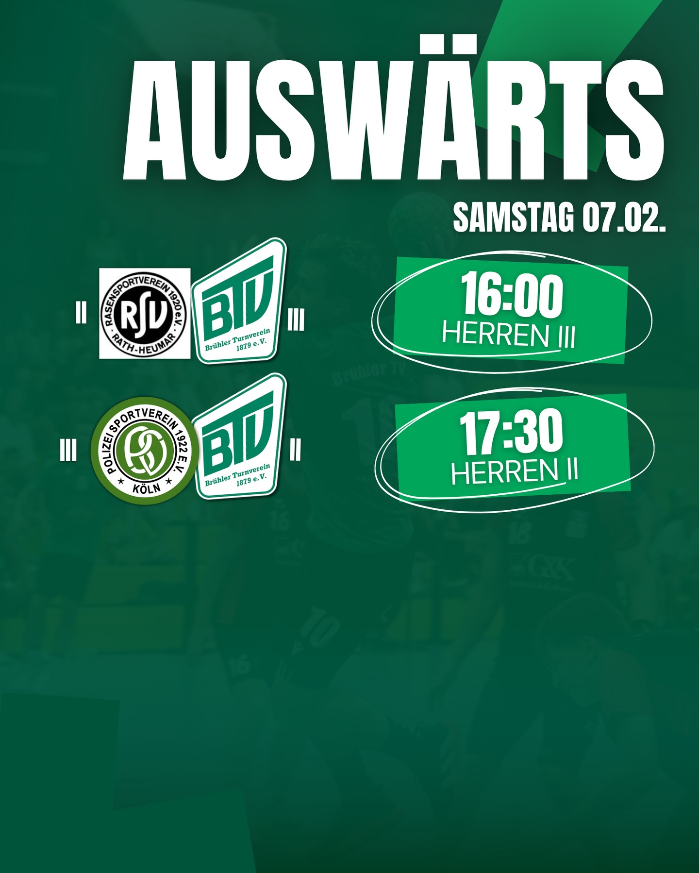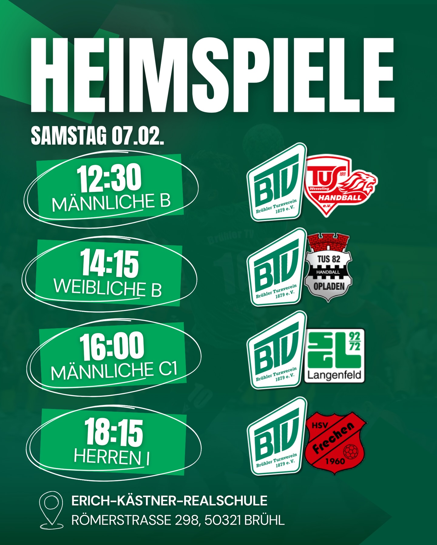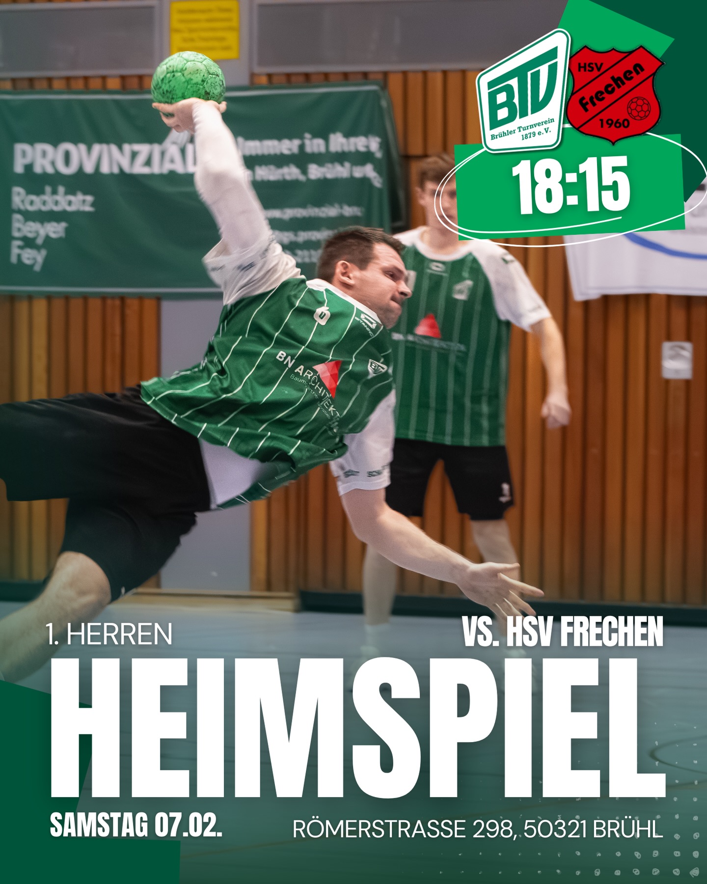 Um 18:15 Uhr spielt dann unsere erste Herren gegen den HSV Frechen👊 Wie immer erwarten wir euch und euren Support🤩🔥