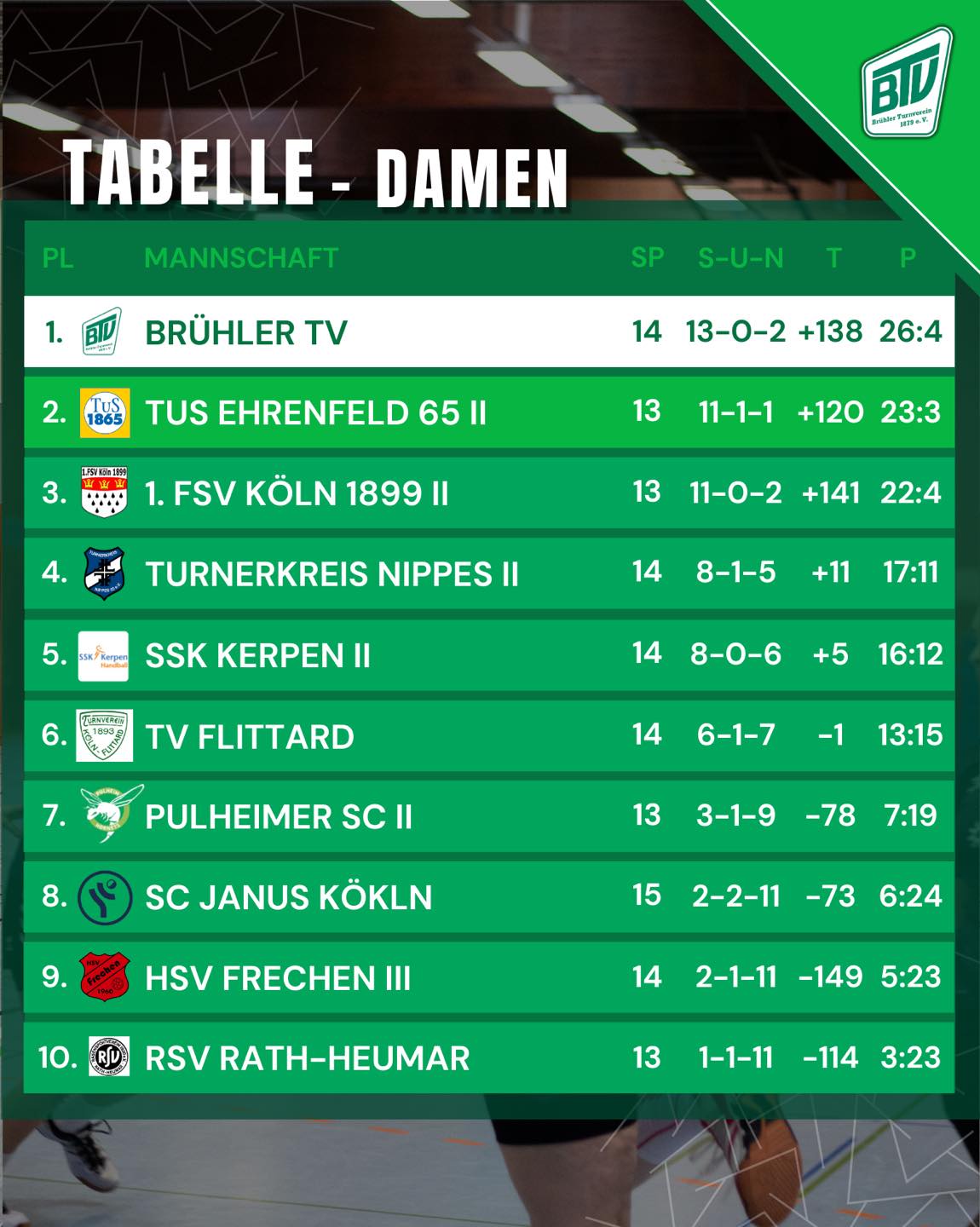 Im Rückspiel gegen den TuS Ehrenfeld II hatte sich die zweite Herren des Brühler TV vorgenommen, es nach der Niederlage im Hinspiel gegen den TuS besser zu machen: in der Abwehr stärker dagegen halten, im Angriff den Ball weniger unnötig verlieren und weniger Tempogegenstöße zulassen.👊