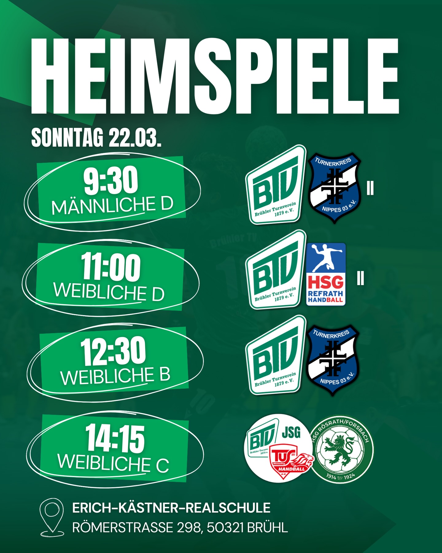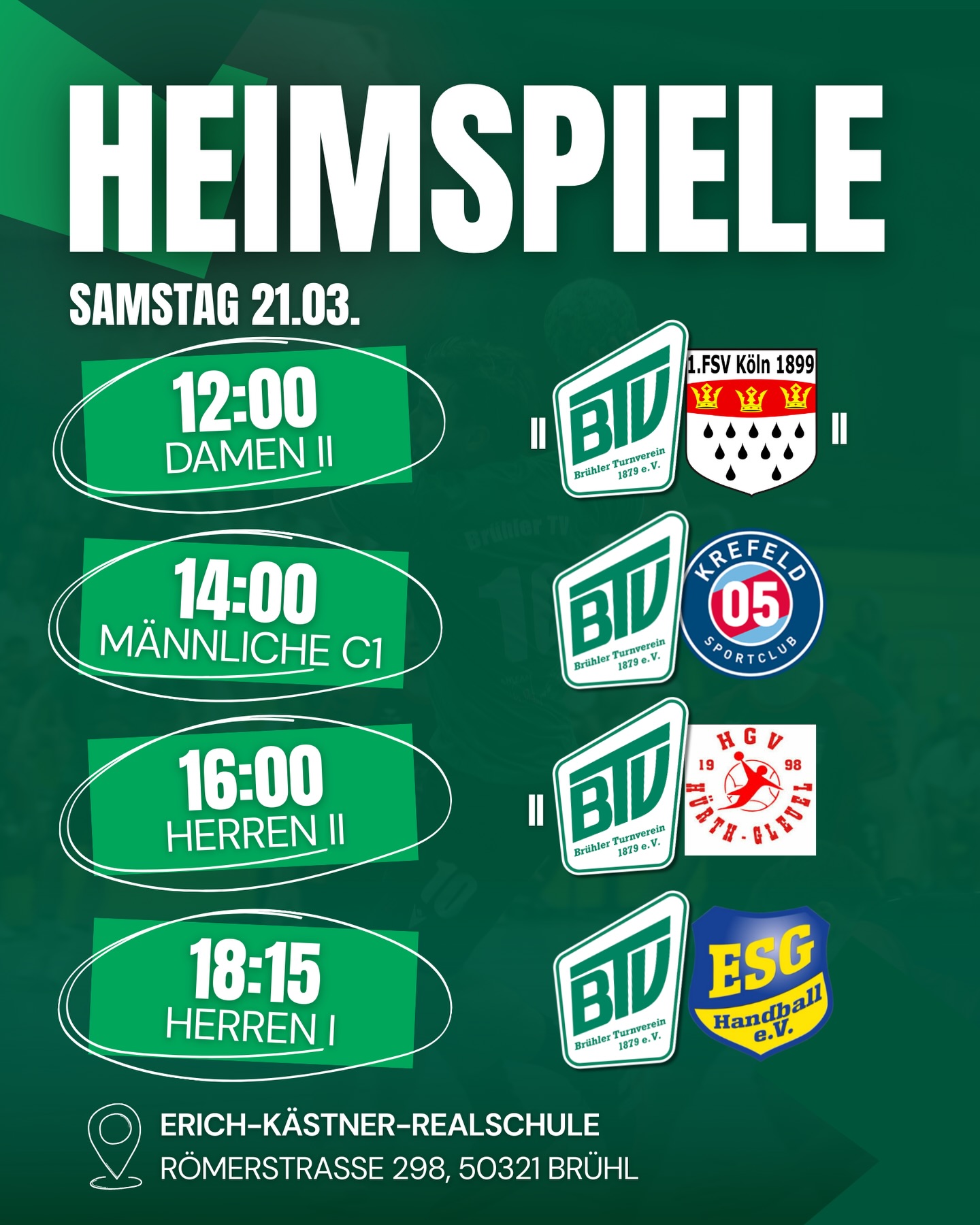 Um immer Up-To-Date zu sein und nichts mehr Rund um den Brühler Handball zu verpassen, folg uns gerne auf Social Media.