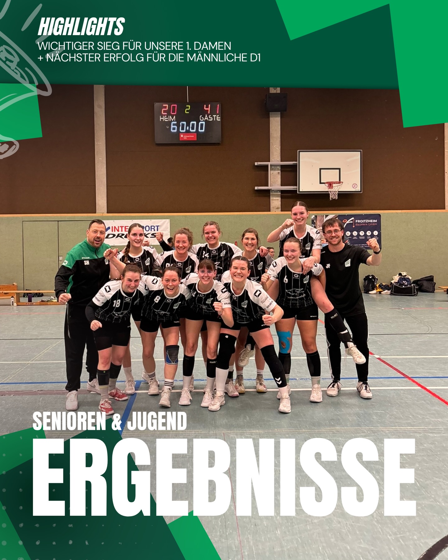 Ebenfalls erfolgreich waren unsere 1. Herren, die das Spitzenspiel gegen den Drittplatzierten HSV Frechen deutlich mit 42:30 für sich entschieden und ihre Saison weiterhin ohne Niederlage fortsetzen. 💪