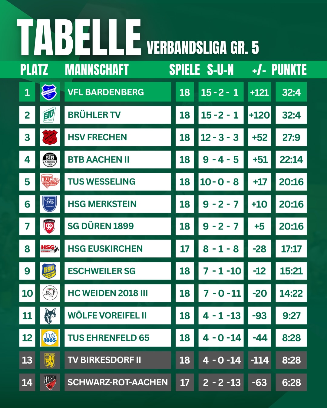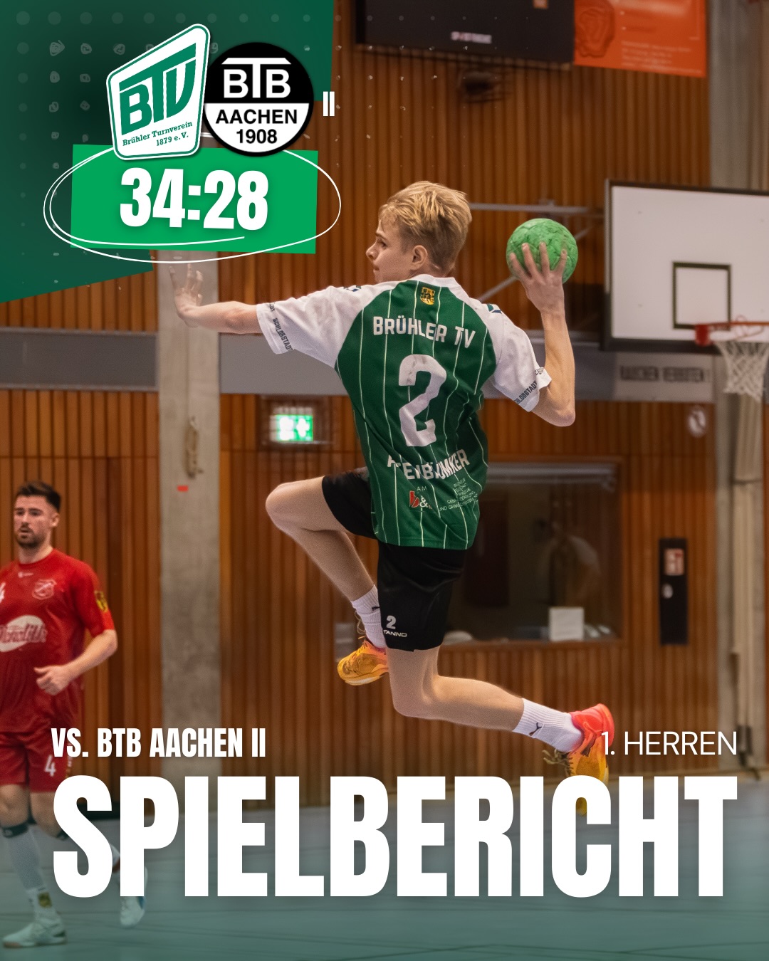Eine geschlossene Mannschaftsleistung führt zu einem verdienten Erfolg gegen den BTB Aachen II. Von Beginn an war klar, dass die junge Mannschaft aus Aachen nicht zu einfachen Toren eingeladen werden durfte und eine kompakte Abwehrarbeit entscheidend sein würde.