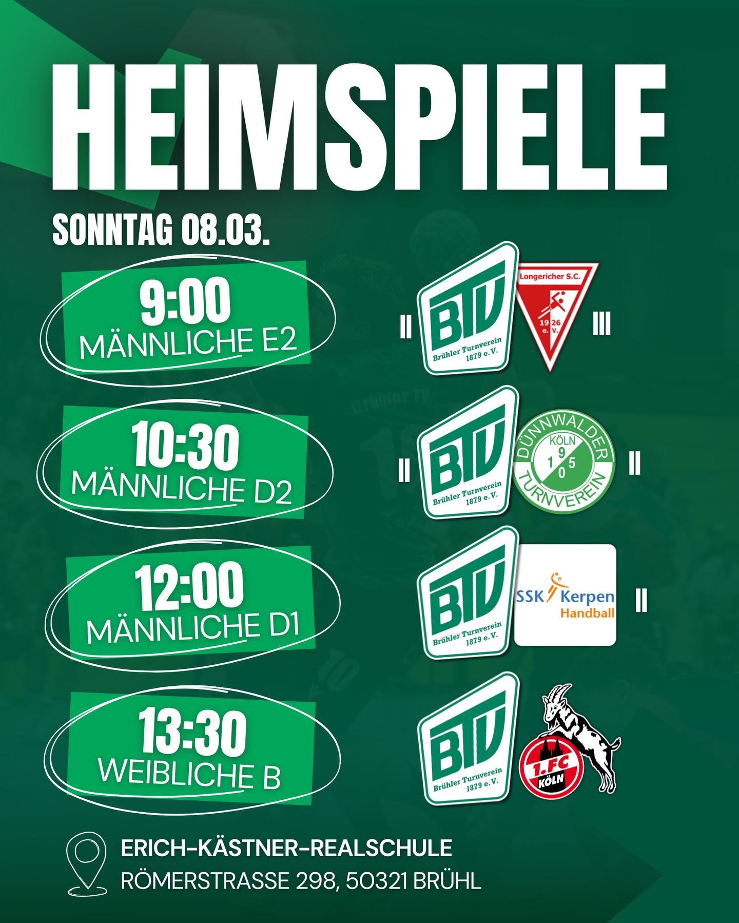 Um immer Up-To-Date zu sein und nichts mehr Rund um den Brühler Handball zu verpassen, folg uns gerne auf Social Media.