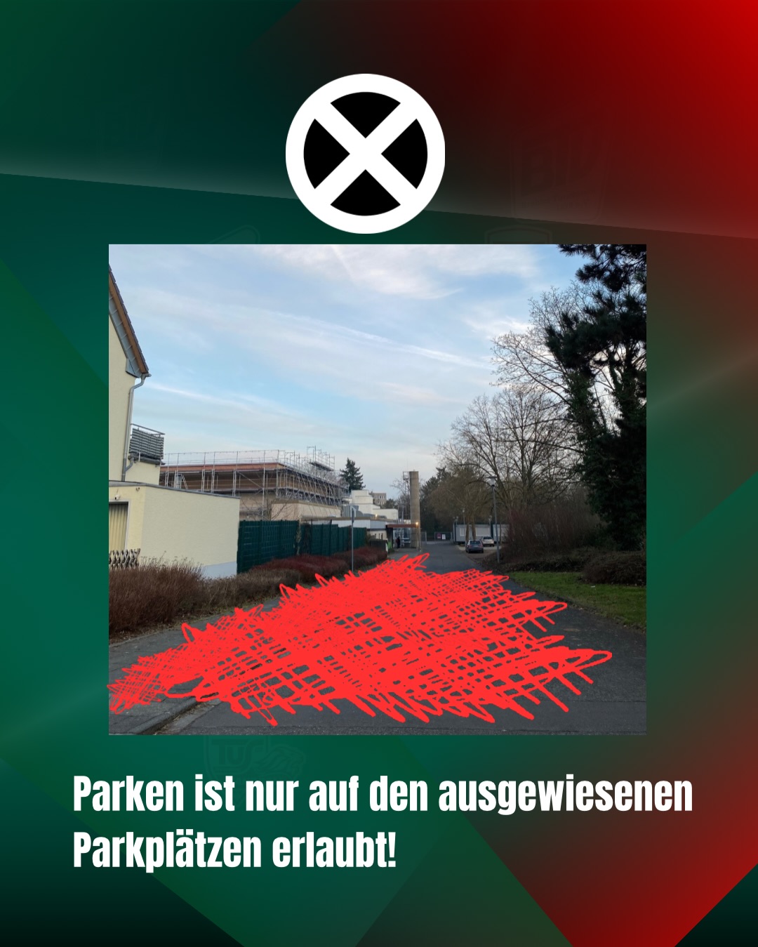 - Falls der Parkplatz voll ist, weicht auf die umliegenden Wohngebiete aus