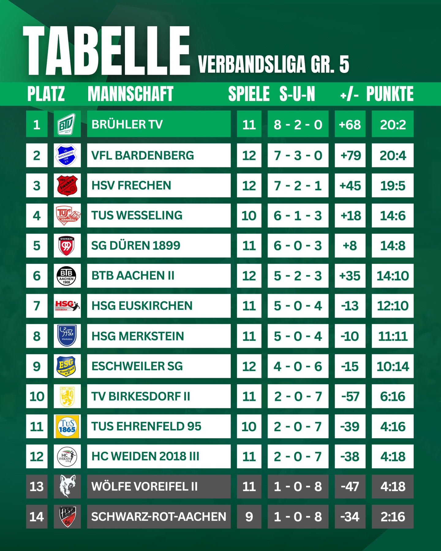 Nachdem das erste Spiel des neuen Jahres aufgrund von Glatteis abgesagt werden musste, ging es für die erste Herren am Sonntag zur besten Anwurfzeit (17:15 Uhr) auswärts gegen die Drittvertretung aus Weiden. Zwar rangierte Weiden vor der Partie auf Platz 11 der Tabelle, doch die bisherigen Ergebnisse fielen meist knapp aus – entsprechend gewarnt reiste der Brühler Tross an.