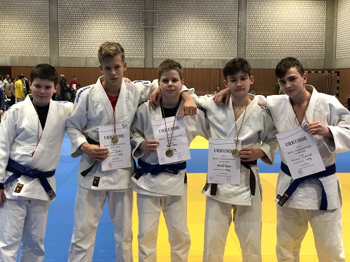 In der U13 männlich zeigten schon viele Brühler tolles Judo. Lars Hirschfeld war in der Klasse bis 37kg nicht zu schlagen und gewann mit 5 Siegen die Goldmedaille. Maximilian Lorbach verlor nach 4 gewonnenen Kämpfen in der Klasse bis 29kg nur das Finale und holte Silber. Dato Bitarishvili, Raúl Büchel, Gregor Ling und Alexander Retzlav zeigten ebenfalls starke Kämpfe und kamen am Ende auf den dritten Platz. Jannik Hanf und Lukas Klötzel gewannen zwar vier Mal, rutschen allerdings mit einem fünften Platz knapp an einer Medaille vorbei.