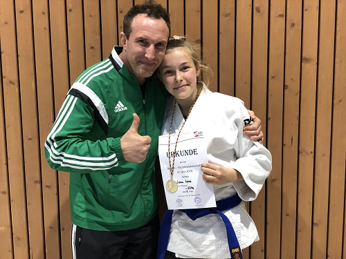 Lena Lenz setzte sich erneut bei den Westdeutschen Einzelmeisterschaften der U15 am 10.03.2019 in Dormagen durch und holte, wie im Vorjahr auch den Titel "Westdeutsche Einzelmeisterin"! Nachdem sie durch etwas Losglück bereits im Viertelfinale stand, gewann sie die ersten beiden Kämpfe in einer gesamten Kampfzeit von gerade mal einer Minute. Auch im Finale ließ sie ihrer Gegnerin vom TV Wickede kaum eine Chance und erkämpfte sich nach knapp zwei Minuten zum zweiten Mal in Folge die Goldmedaille bei den Landesmeisterschaften!