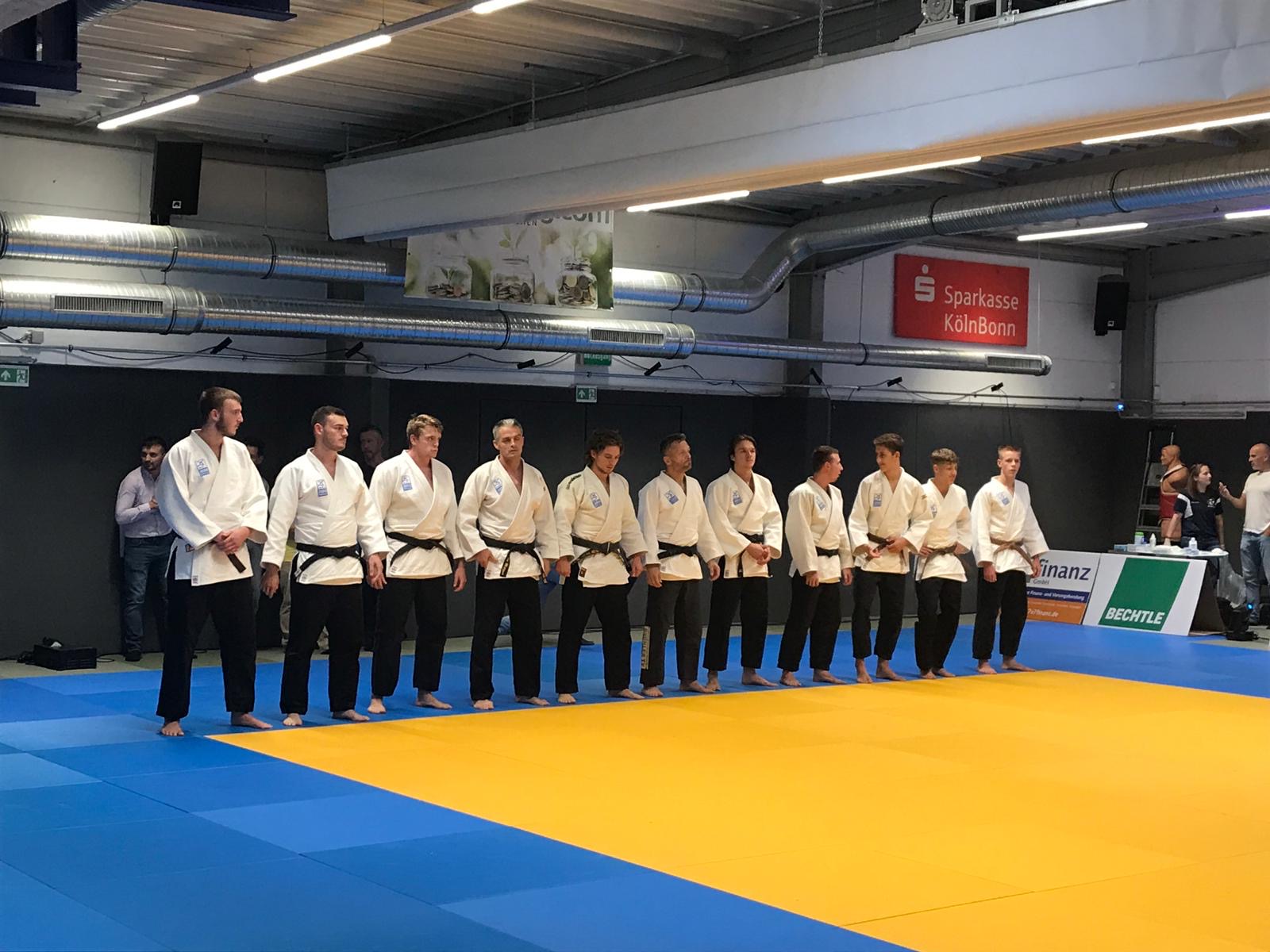 In der Vorrunde mussten sich die Männer direkt gegen den späteren Westdeutschen Mannschaftsmeister aus Bottrop mit 1:4 geschlagen geben. Doch ließen sich nicht unterkriegen. Ganz im Gegenteil. Die nächste Runde im Pool A gewannen sie gegen den DJK Eintracht Borbeck klar und deutlich mit 3:1. Mit einem zweiten Platz in der Vorrunde kamen sie gegen den TSV Bayer 04 Leverkusen, Erster aus dem Pool B, ins Halbfinale. Hier setzten sich die Brühler wieder deutlich mit 3:1 gegen den Judo Nachbar durch. Das Finale gegen Bottrop war fast eine Wiederholung aus Vorrunde, Brühl unterlag erneut mit 1:4. Doch mit dem zweiten Platz und der Qualifikation zum Bundesfinale waren das Team und der Trainer mehr als zufrieden!