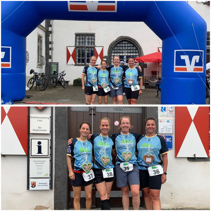 50km, 3 Etappen, 1000 Höhenmeter - dieser Herausforderung stellten sich Julia Berninger, Ines Birk, Melanie Meyer und Annika Rüter am vergangenen Wochenende. Während Melanie und Annika das Wochenende als Trainingslager nutzten und es entspannter angingen, haben Julia und Ines von Anfang an auf Tempo gesetzt. Nach einer nostalgischen Anreise im historischen Schienenbus zum Rathaus in Linz ging es von dort in einem spannenden Kurs an Tag 1 stetig bergauf zum Tagesziel in Vettelschoß. Auf dieser Etappe galt es direkt zu Beginn, 550 Höhenmeter in knackigen Anstiegen auf 14km zu überwinden. In Vettelschoß startete am nächsten Tag die 2. Etappe, einem abwechslungsreichen Halbmarathon über 4 Runden. Auch hier wurden die Läuferinnen nach steilen Anstiegen mit herrlichen Ausblicken belohnt. Nach zwei sonnig-heißen Etappen begann Tag 3 regnerisch, doch das sollte sich zum Glück ändern. Pünktlich zum Start meinte der Wettergott es gut und schickte alle bei milderen Temperaturen und weitgehend trocken auf die finale Etappe Richtung Linz. Man hätte meinen können, es ginge nur noch bergab, aber auf diesem Teil mussten die letzten Höhenmeter gesammelt werden, um die 1000 Höhenmeter und die 50km voll zu machen. Das gelang den BTVlerinnen mit Bravour. Julia und Ines belegten mit Platz 15 und 16 bei den Damen starke Positionen, Julia konnte sogar Platz 2 in der Alterklasse für sich gewinnen! Herzlichen Glückwunsch! Melanie und Annika haben ihr Ziel erreicht und liefen in die Top 30. Am Linzer Rathaus durften sich die 4 mit allen anderen Finishern über eine originelle Lebkuchenmedaille freuen. Ihr Fazit: Eine tolle Veranstaltung, liebevoll vorbereitet und mit einer super Stimmung, bei der jede Leistung zählt und die Erstplatzierten genauso gefeiert werden wie die, die etwas länger auf der Strecke sind. Die BTV-Damen haben die Herausforderung nicht nur angenommen, sondern eindrucksvoll gemeistert!