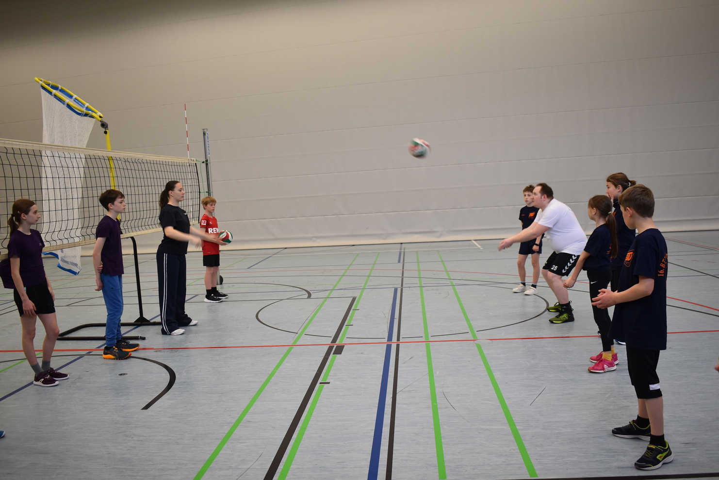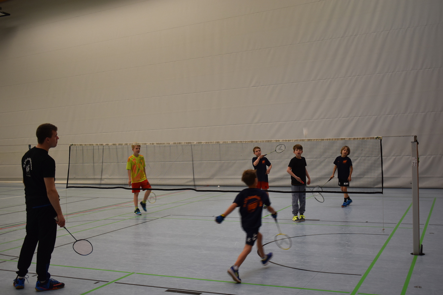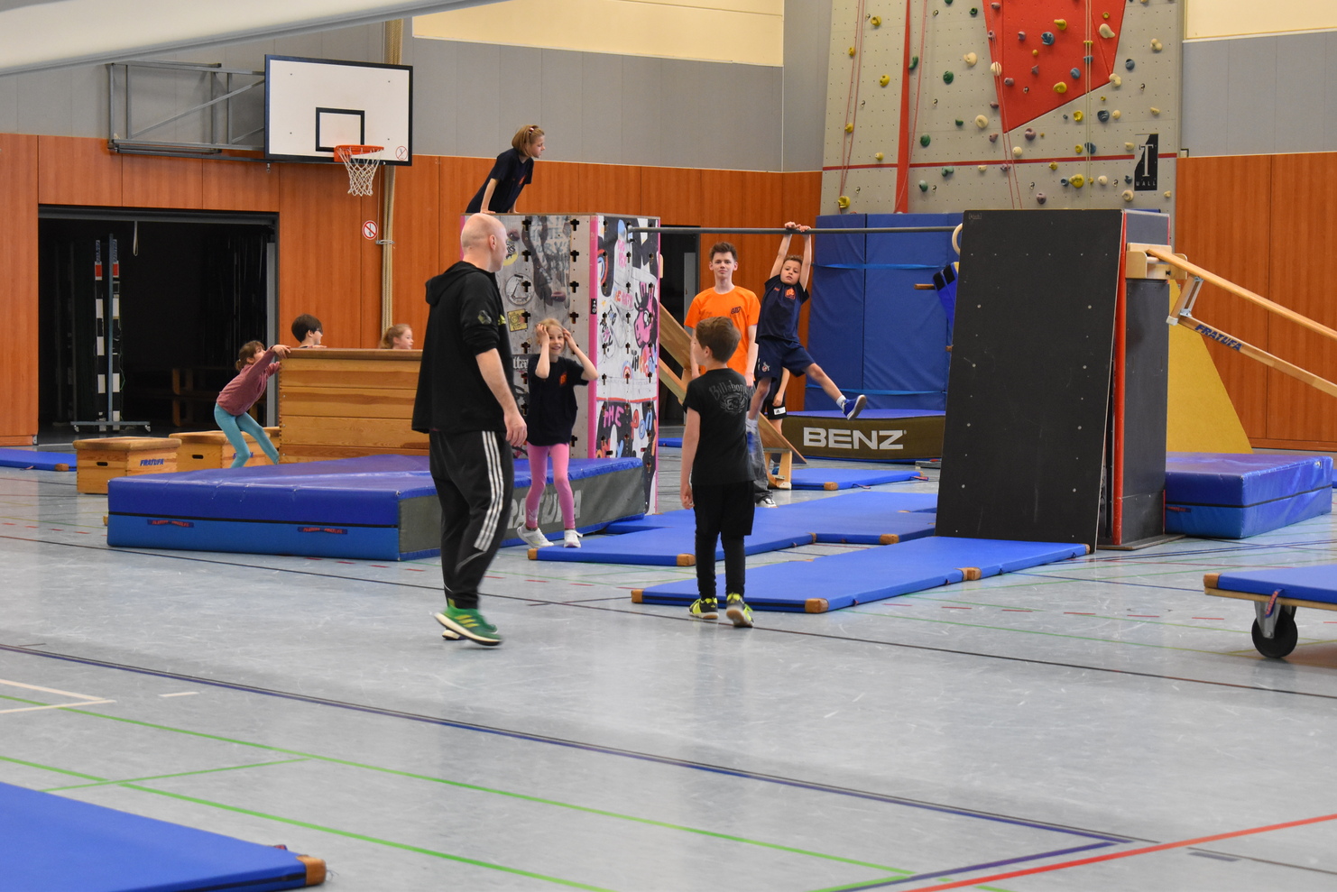 Unsere Tage begannen wie immer mit einem gemeinsamen Aufwärmspiel, bevor die Kinder in Gruppen mit Gleichaltrigen eingeteilt wurden. In diesen Gruppen konnten dann über vier Tage verteilt die Sportarten Trampolin, Judo, Badminton und Parkour ausprobiert werden. Auch die gängigen Ballsportarten wie Volleyball und Handball waren vertreten und bei meist gutem Wetter konnte draußen zusätzlich Leichtathletik gemacht werden. Dieses Jahr waren außerdem auch wieder die Sportarten Turnen und Rollstuhlbasketball dabei, welche mit besonders großer Begeisterung ausprobiert wurden. Nach zwei sportlichen Einheiten ging es dann gemeinsam zur Mittagspause. Dort wurden die Kinder mit einer gesunden, leckeren Mahlzeit versorgt und konnten anschließend gut gestärkt in die freie Spielezeit in der großen Dreifachhalle gehen. Das ließen sich auch die motivierten Trainer/-innen nicht zweimal sagen und tobten gemeinsam mit den Kindern! Nachmittags fand die dritte und letzte Sporteinheit für den Tag statt und es wurden weiterhin die Sportarten mit viel Begeisterung und guter Laune kennengelernt. Am Tagesende wurde sich mit einem gemeinsamen Abschlussspiel verabschiedet. Am Ende der Woche gab es wie die Jahre zuvor die Möglichkeit, innerhalb zweier sog. Wunscheinheiten nochmal die liebste Sportart auszuprobieren. Am beliebtesten waren dabei Inline-Skater Hockey mit gaaaanz vielen Toren, wilde Ballspiele gegen das Trainerteam und ein großes Rollstuhlbasketball-Turnier. Und ganz am Ende natürlich die prall gefüllten BTV-Taschen inkl. Schokohase für alle Teilnehmenden!